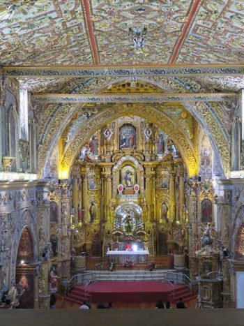 Quito, Peru’s architecture takes you back to the 1800s with church alters covered in gold.