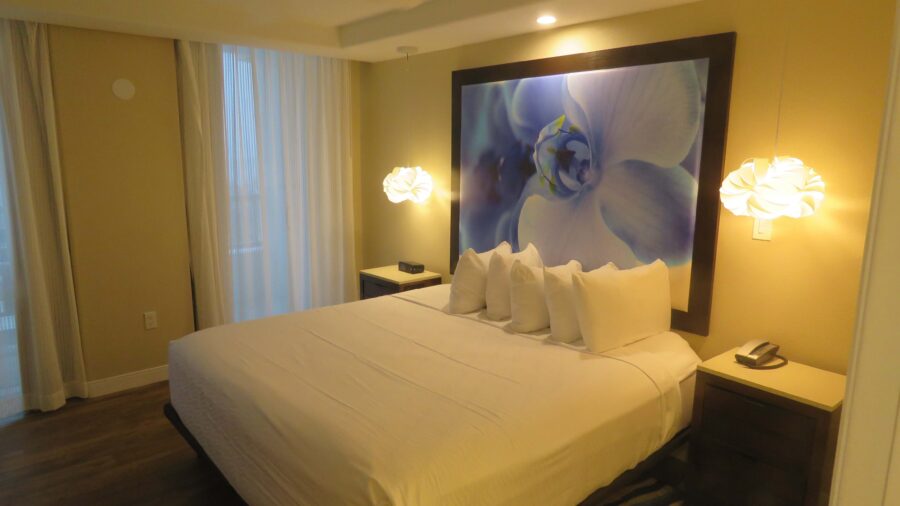 The Lido has a combination of King beds and Queen beds. The rooms have ample plug ins for your devices. Soothing wall art makes for a mellow environment.